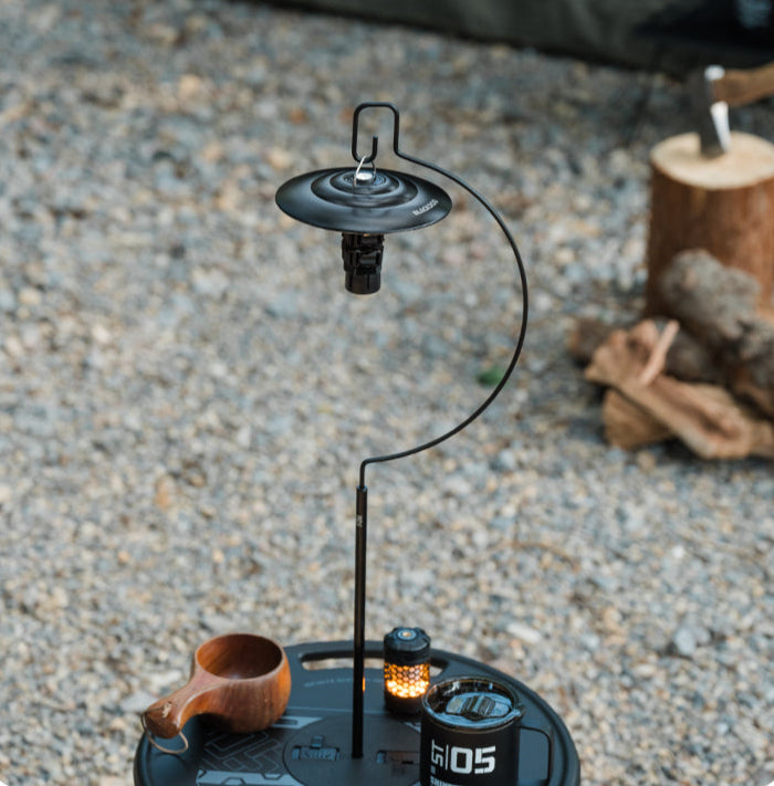 Clip on the pole to hang a lantern for night cooking or card games. Pop it off in seconds when packing or when you want a clean tabletop.