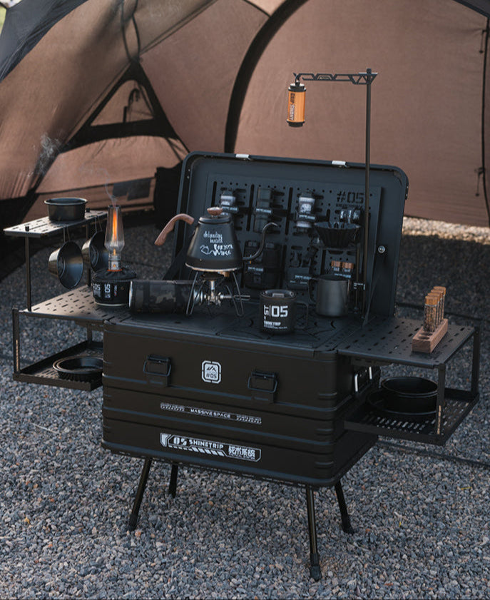 Pegboard/platform on the lid lets you hang tools and small items—maximising vertical space.