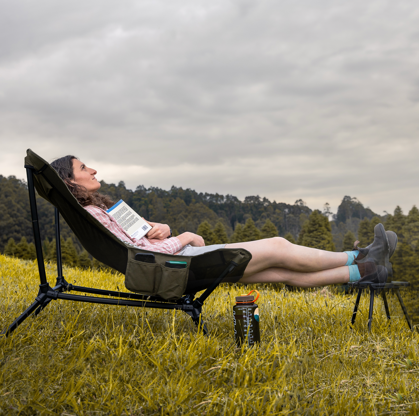 Designed for longer lounging, this chair’s high-back support, ergonomic angle, and wide base bring living room comfort to the wild. Built with aircraft-grade aluminum poles and rugged 900D Oxford fabric.